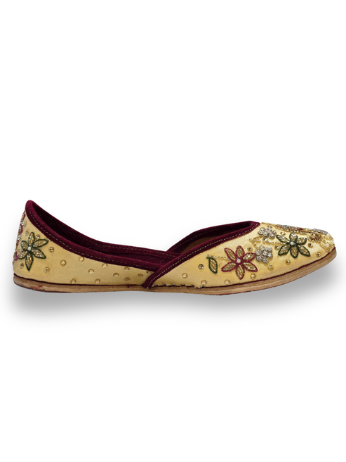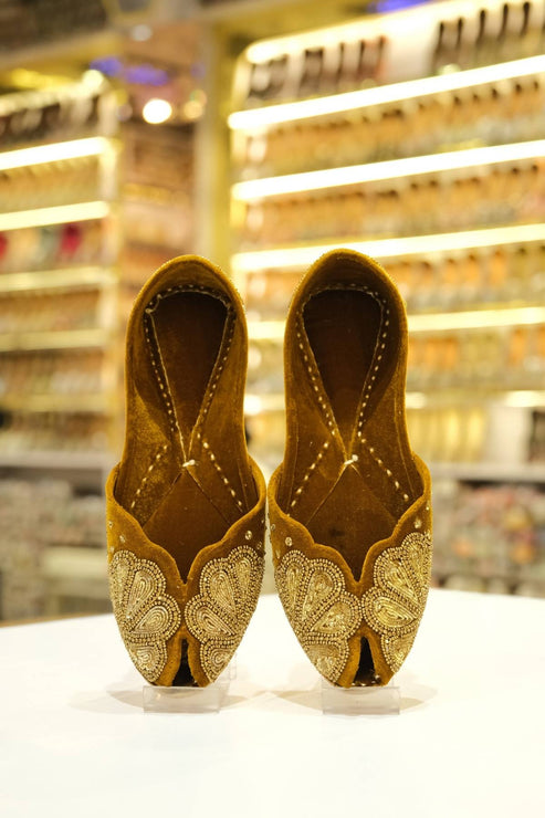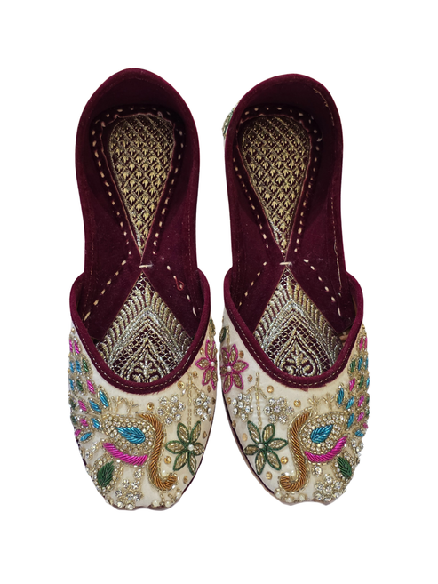 The structured silhouette combined with a cushioned insole ensures comfort without compromising on style. Perfect for receptions, cocktail nights, and grand wedding functions, this jutti adds modern sparkle to traditional elegance.