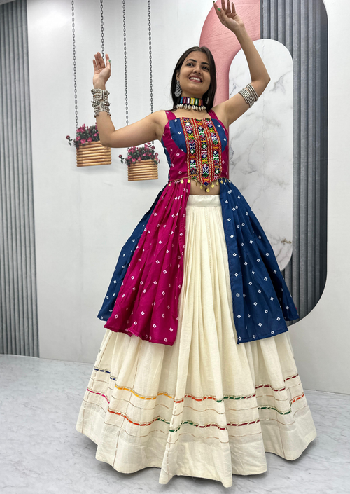 Style with a silk or cotton lehenga and nude heels for a contemporary twist.
