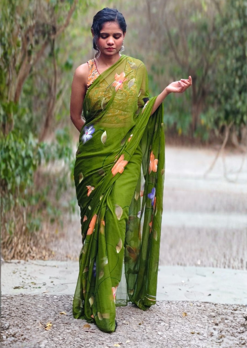 Paired with a beautifully detailed blouse, this saree is perfect for daytime weddings, engagement functions, festive gatherings, and intimate celebrations.