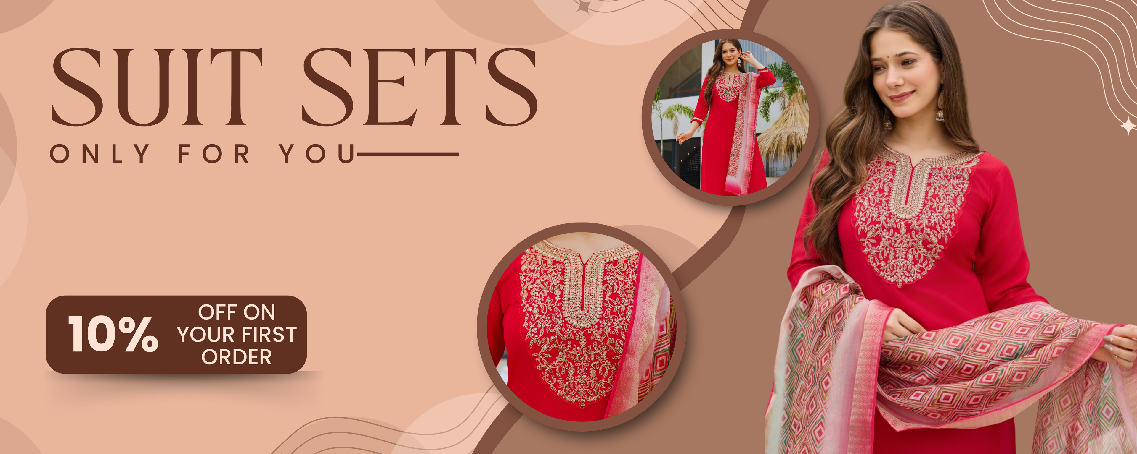 Inclusive of all taxesElevate your ethnic wardrobe with the Gulabi Aabha Chanderi Silk Suit Set—a stunning ensemble that brings together rich fabrics and exquisite craft for festive occasions and graceful gatherings. The top is tailored from premium pure viscose Chanderi silk, adorned with elegant sequence and intricate coding embroidery work along the neckline and center panel for a refined, festive look. With a flattering kurti length of 44+ inches, the silhouette is modern yet truly traditional.