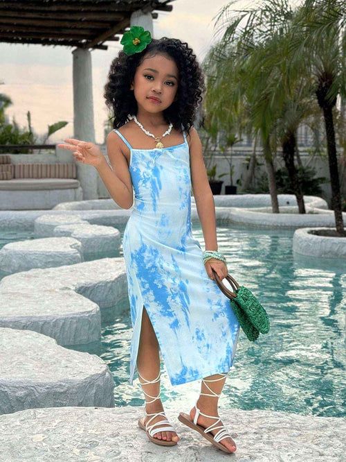 Style hair in a loose bun or deep waves to highlight the cape embroidery and neckline.