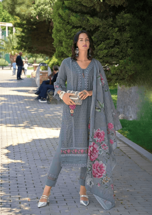 This showstopper set is paired with a designer Cosmos dupatta in a matching shade, also generously embroidered and finished with eye-catching Latkans that add festive charm and sophistication. The dupatta measures a grand 2.30 meters, letting you drape, style, or swirl at will. Whether for a wedding, sangeet, or any celebration, this ensemble promises to turn heads and guarantee regal appeal.