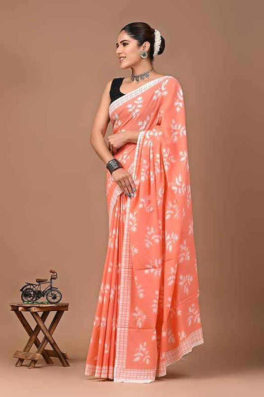 बिक्रीपीच पटाका समर ब्लूम मुलमुल कॉटन साड़ी