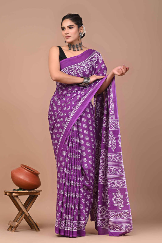बिक्रीबैंगनी पैस्ले पॉप मुलमुुल कॉटन मैजिक साड़ी